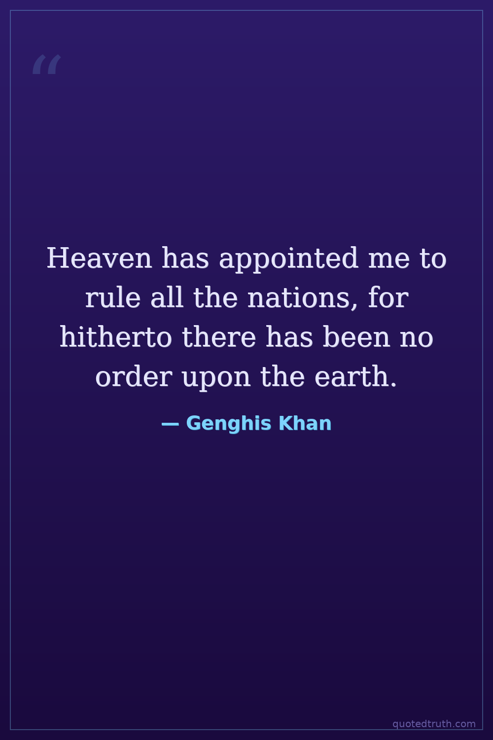 Heaven has appointed me to rule all the nations, for hitherto there has been no order upon the earth.