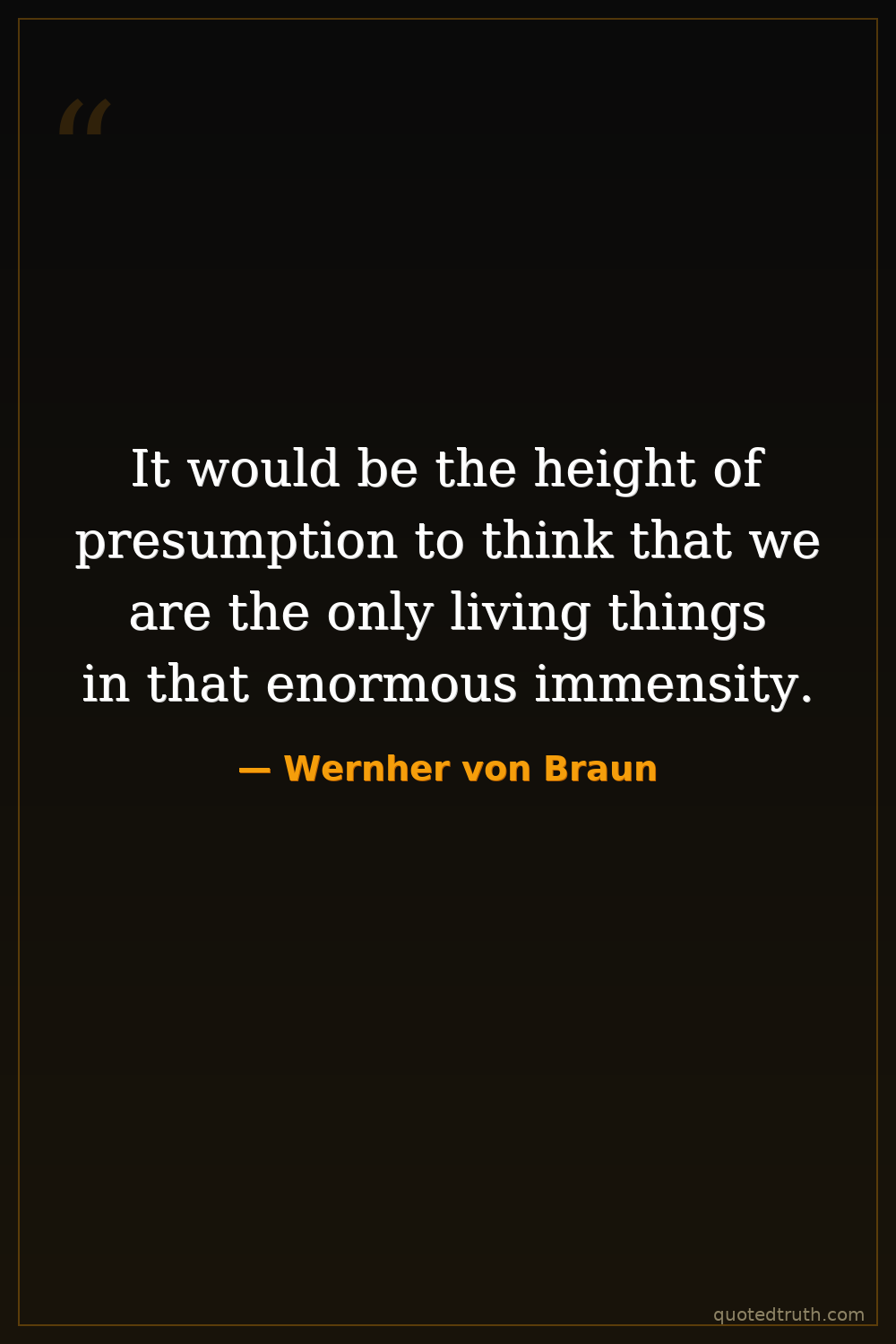 It would be the height of presumption to think that we are the only living things in that enormous immensity.