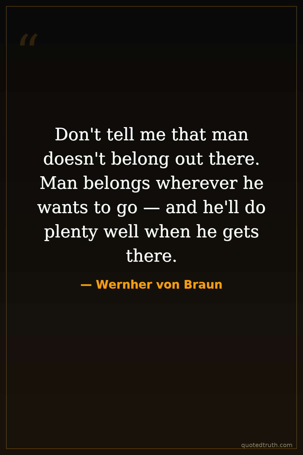 Don't tell me that man doesn't belong out there. Man belongs wherever he wants to go — and he'll do plenty well when he gets there.