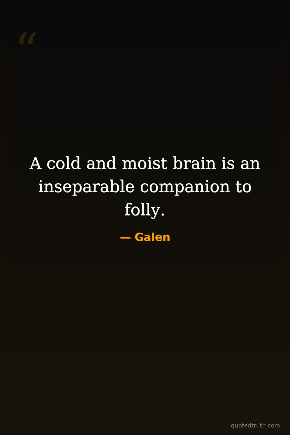 A statement reflecting his humoral pathology, linking specific bodily conditions (cold and moist brain) to mental states (folly), which is a pre-scientific and somewhat crude understanding of mental health.