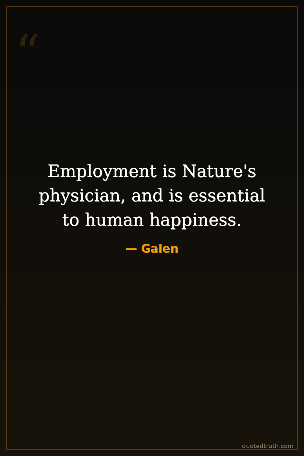 Employment is Nature's physician, and is essential to human happiness.
