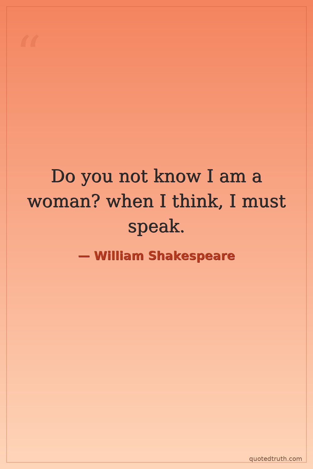 Do you not know I am a woman? when I think, I must speak.