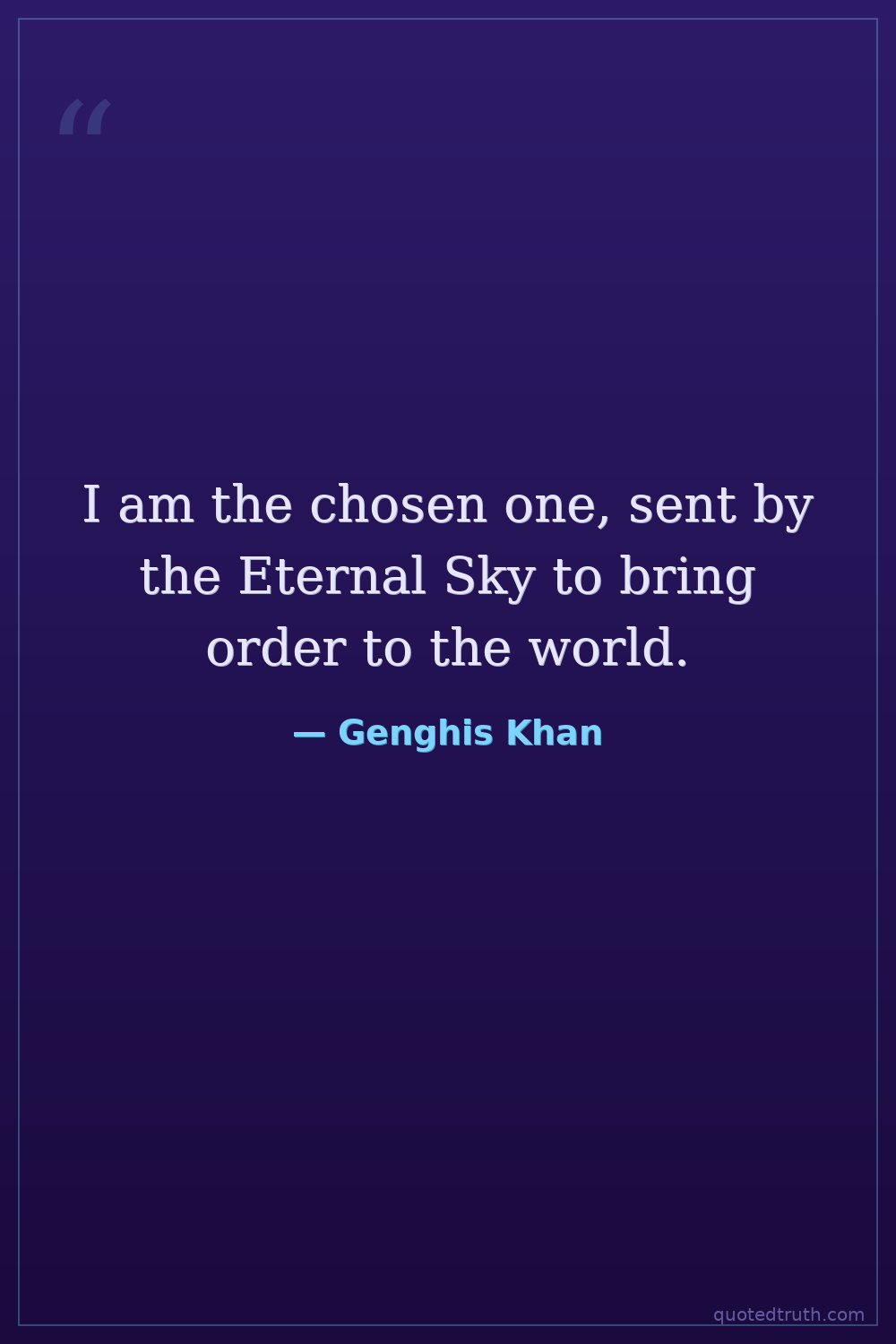 I am the chosen one, sent by the Eternal Sky to bring order to the world.