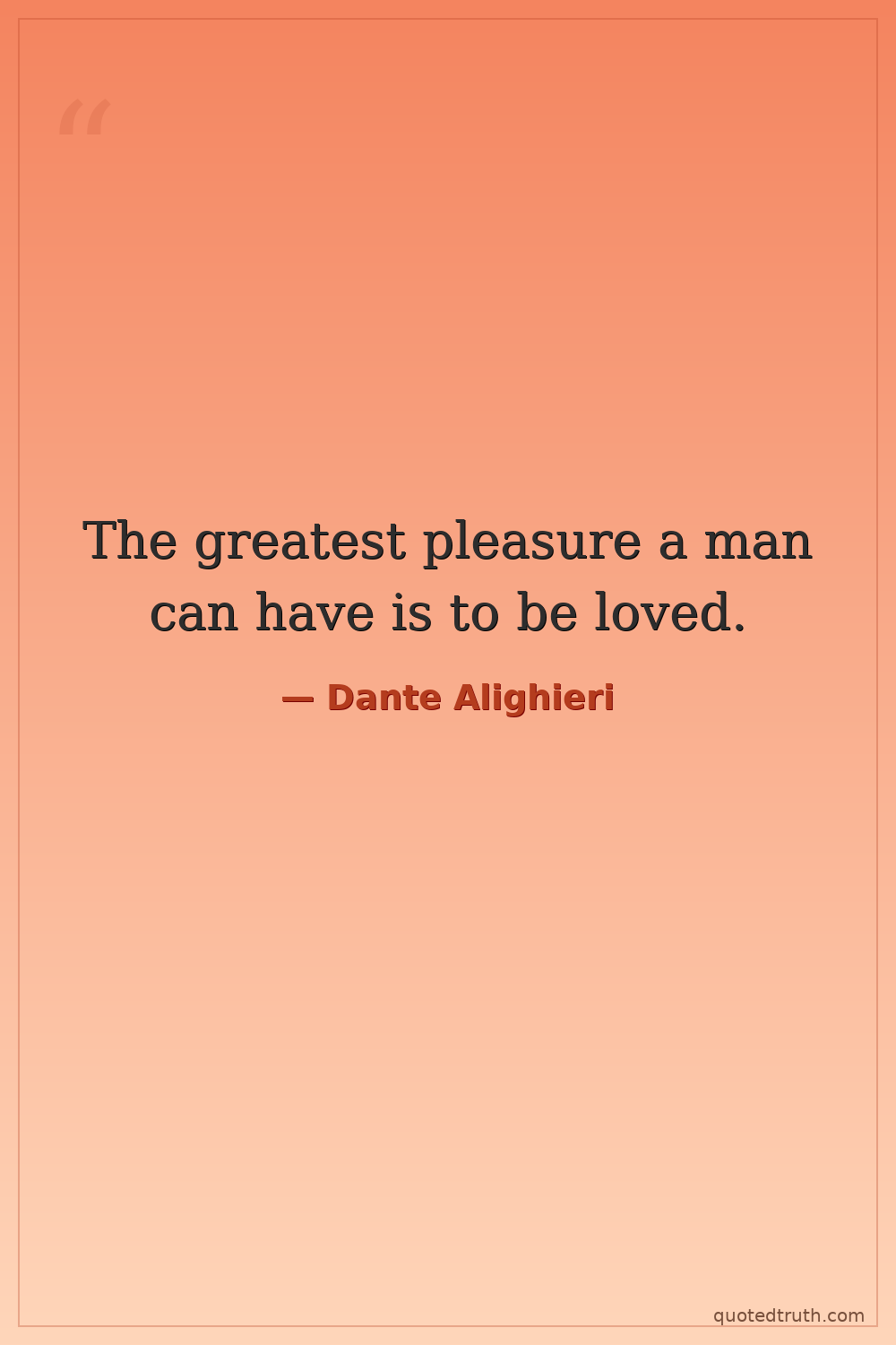 The greatest pleasure a man can have is to be loved.