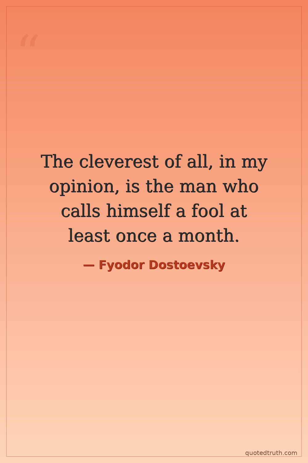 The cleverest of all, in my opinion, is the man who calls himself a fool at least once a month.