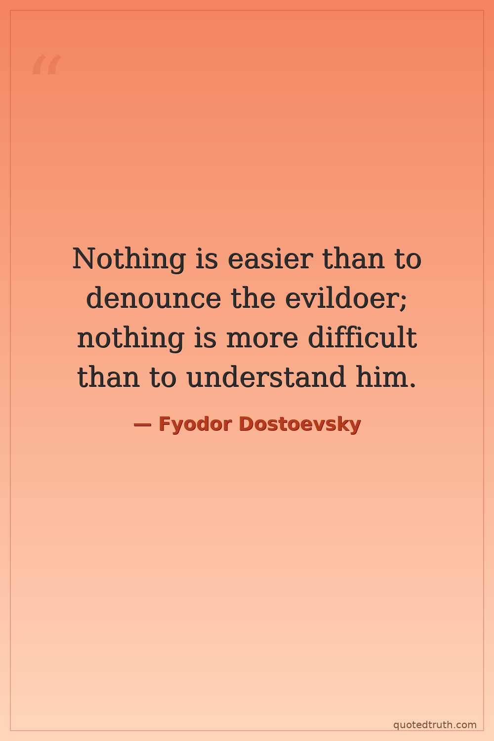 Nothing is easier than to denounce the evildoer; nothing is more difficult than to understand him.