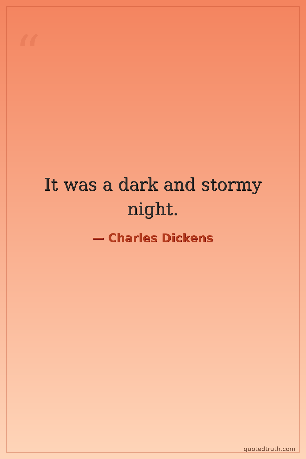 Humorous"It was a dark and stormy night; the rain fell in torrents—except at occasional intervals, when it was checked by a violent gust of wind which swept up the streets (for it is in London that our scene l…"