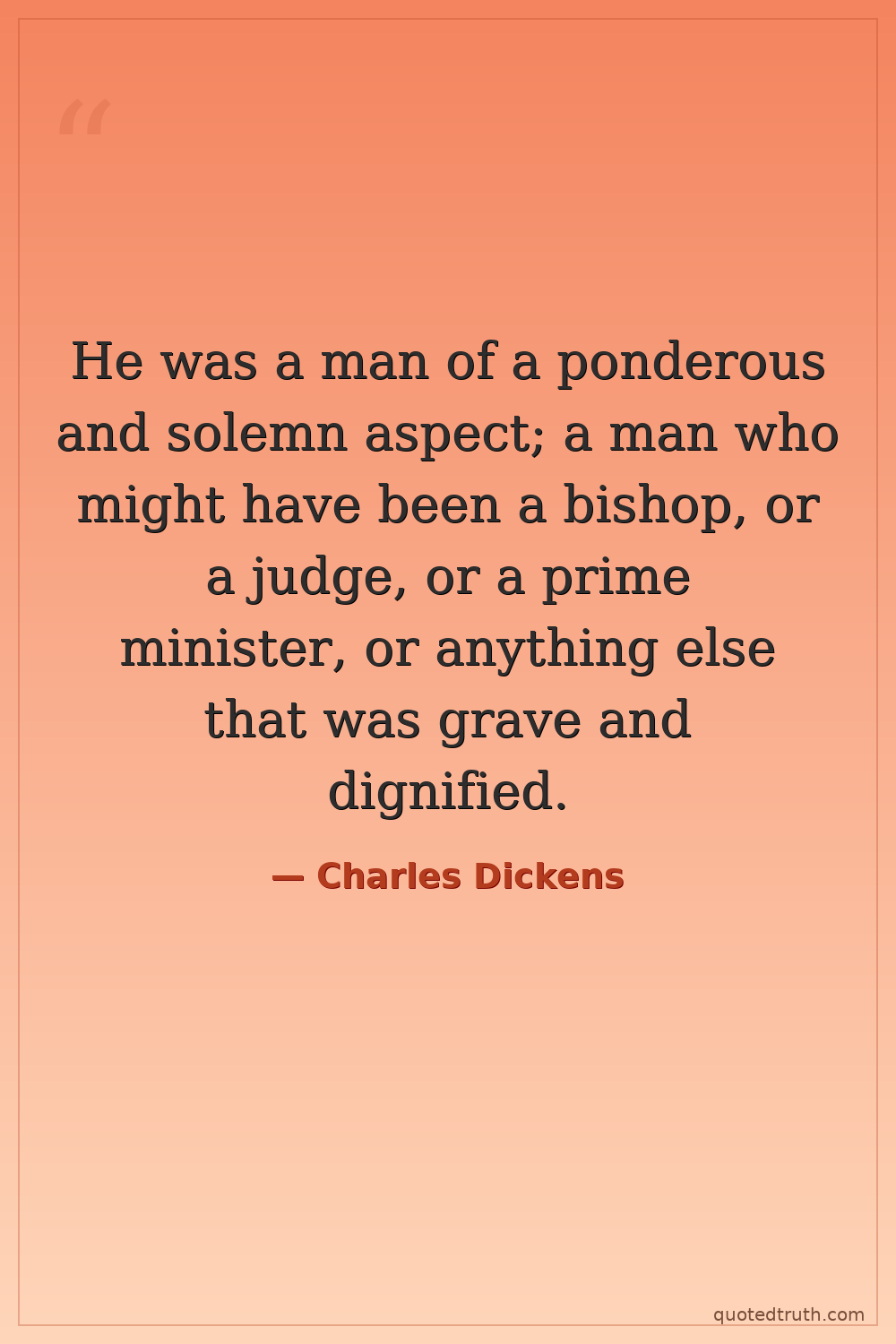 He was a man of a ponderous and solemn aspect; a man who might have been a bishop, or a judge, or a prime minister, or anything else that was grave and dignified.