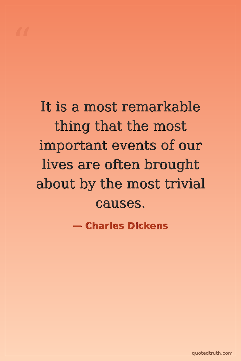 It is a most remarkable thing that the most important events of our lives are often brought about by the most trivial causes.