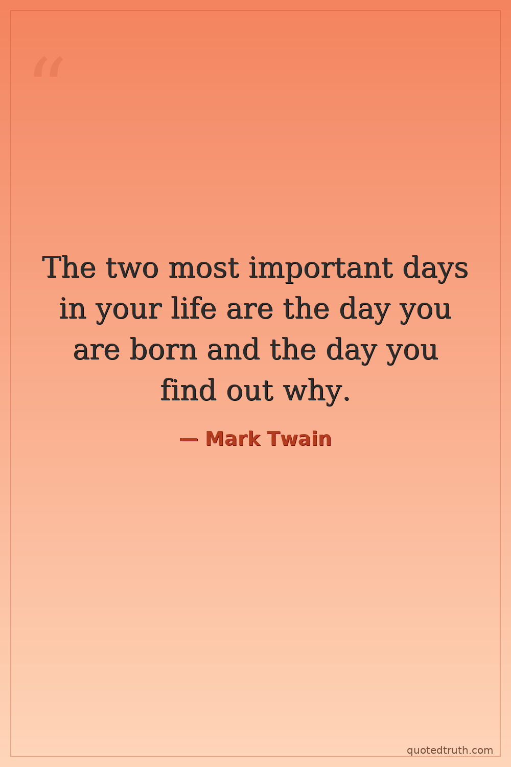 The two most important days in your life are the day you are born and the day you find out why.