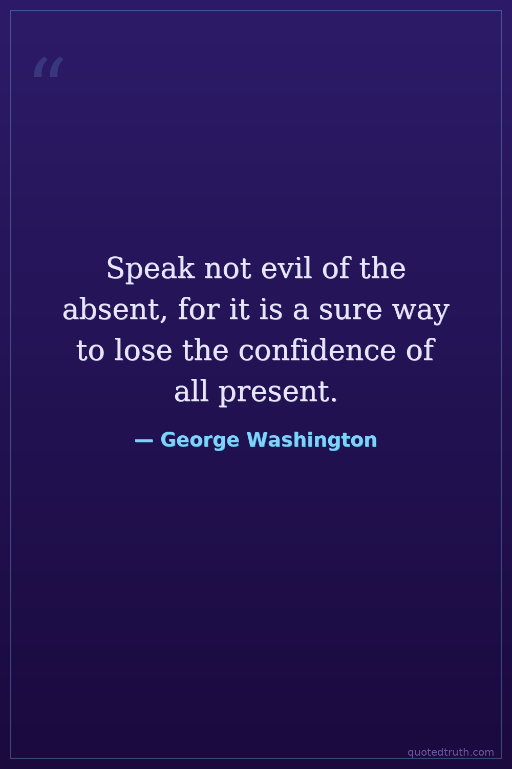 Speak not evil of the absent, for it is a sure way to lose the confidence of all present.