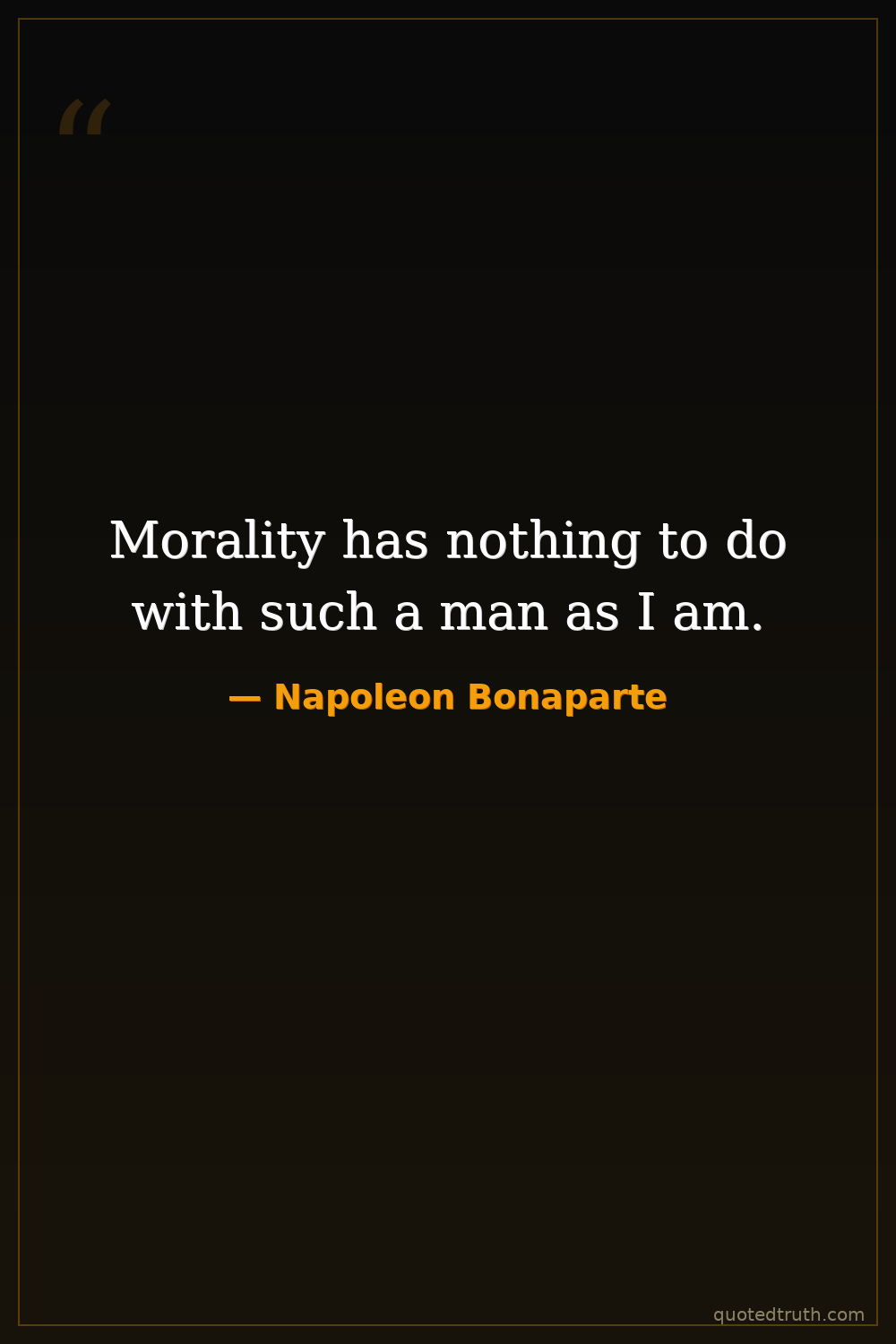 Morality has nothing to do with such a man as I am.