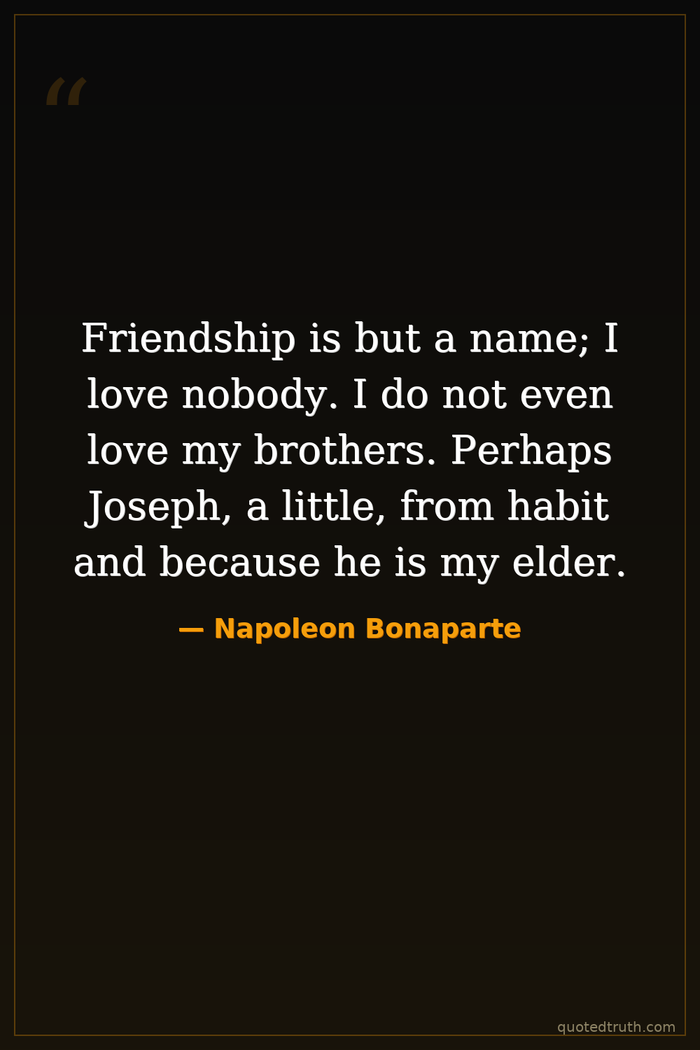 Friendship is but a name; I love nobody. I do not even love my brothers. Perhaps Joseph, a little, from habit and because he is my elder.