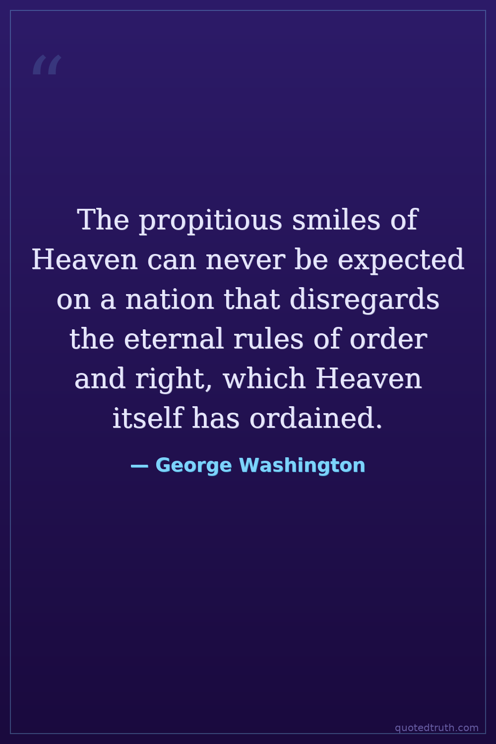 The propitious smiles of Heaven can never be expected on a nation that disregards the eternal rules of order and right, which Heaven itself has ordained.