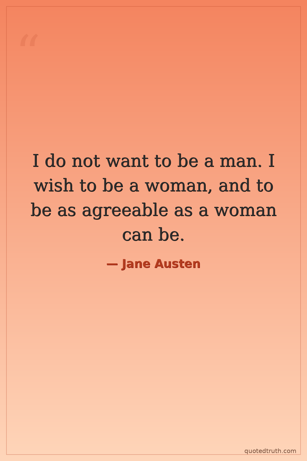 I do not want to be a man. I wish to be a woman, and to be as agreeable as a woman can be.