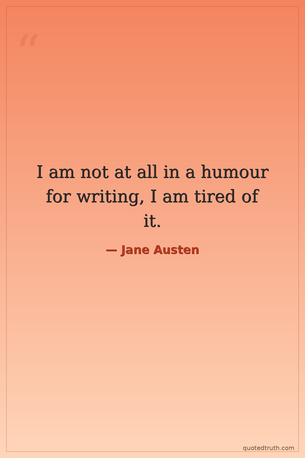 I am not at all in a humour for writing, I am tired of it.