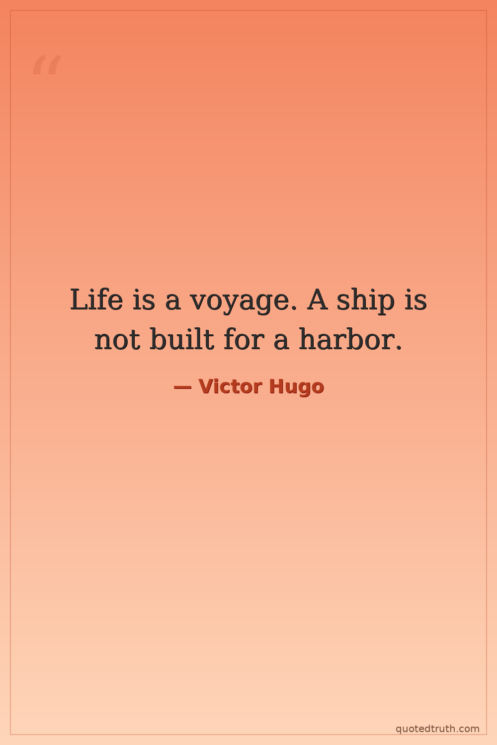 Life is a voyage. A ship is not built for a harbor.