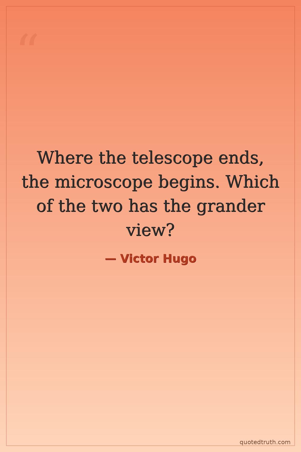 Where the telescope ends, the microscope begins. Which of the two has the grander view?