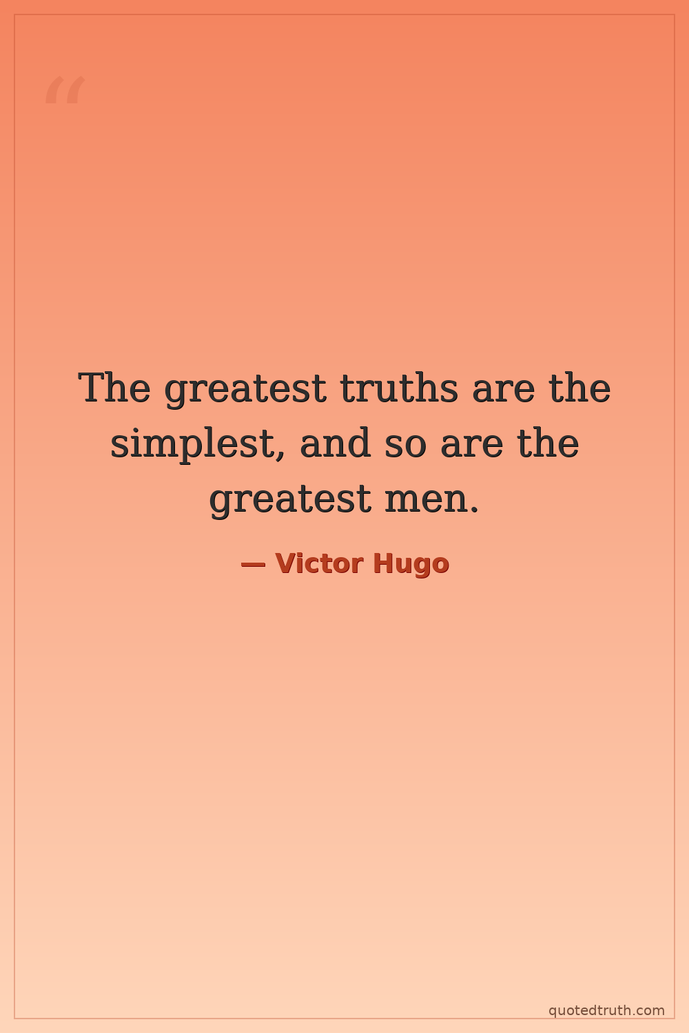 The greatest truths are the simplest, and so are the greatest men.