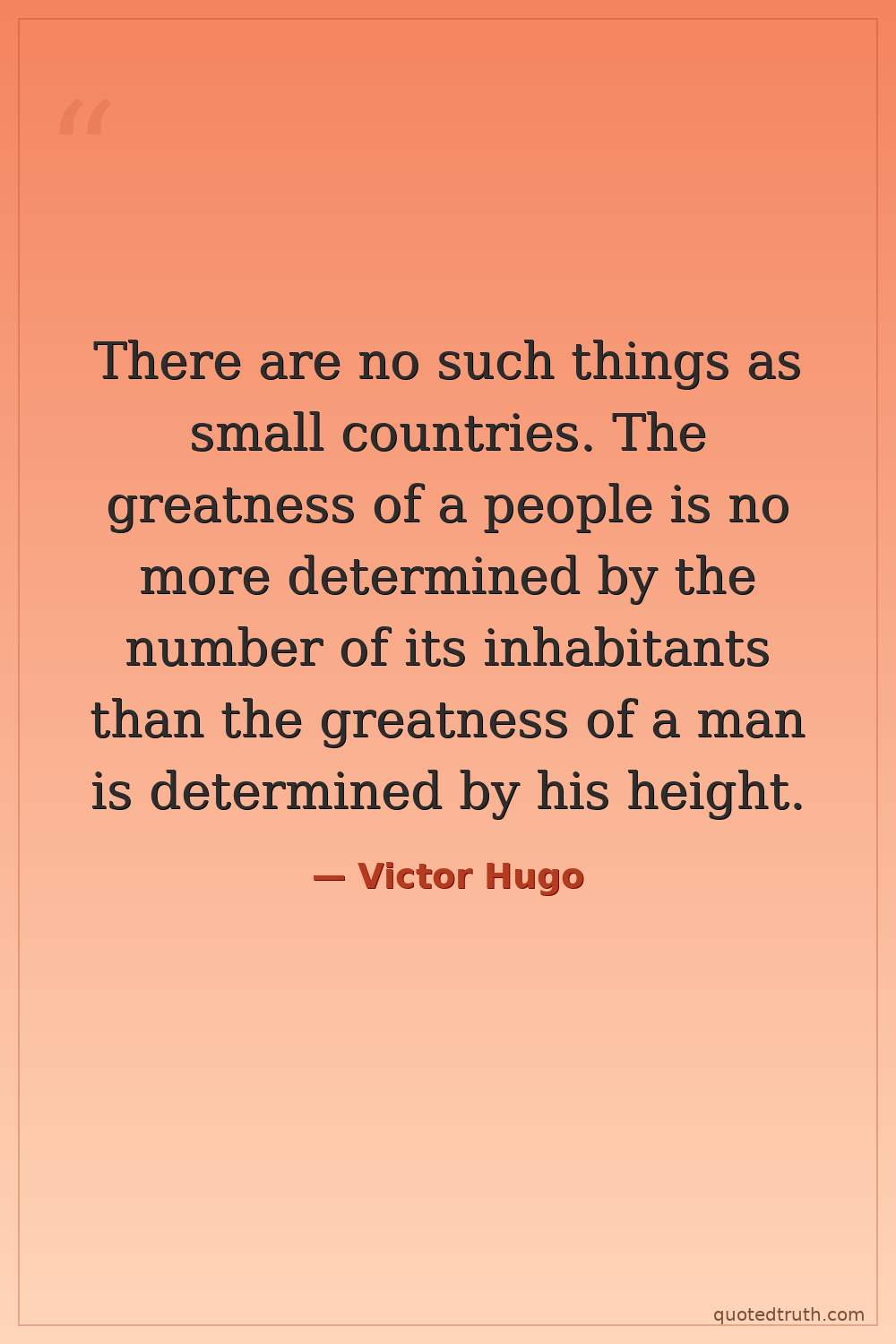 There are no such things as small countries. The greatness of a people is no more determined by the number of its inhabitants than the greatness of a man is determined by his height.