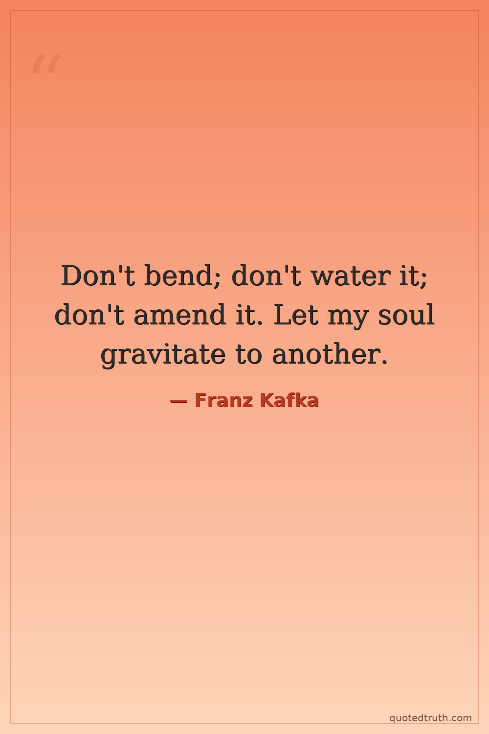 Don't bend; don't water it; don't amend it. Let my soul gravitate to another.