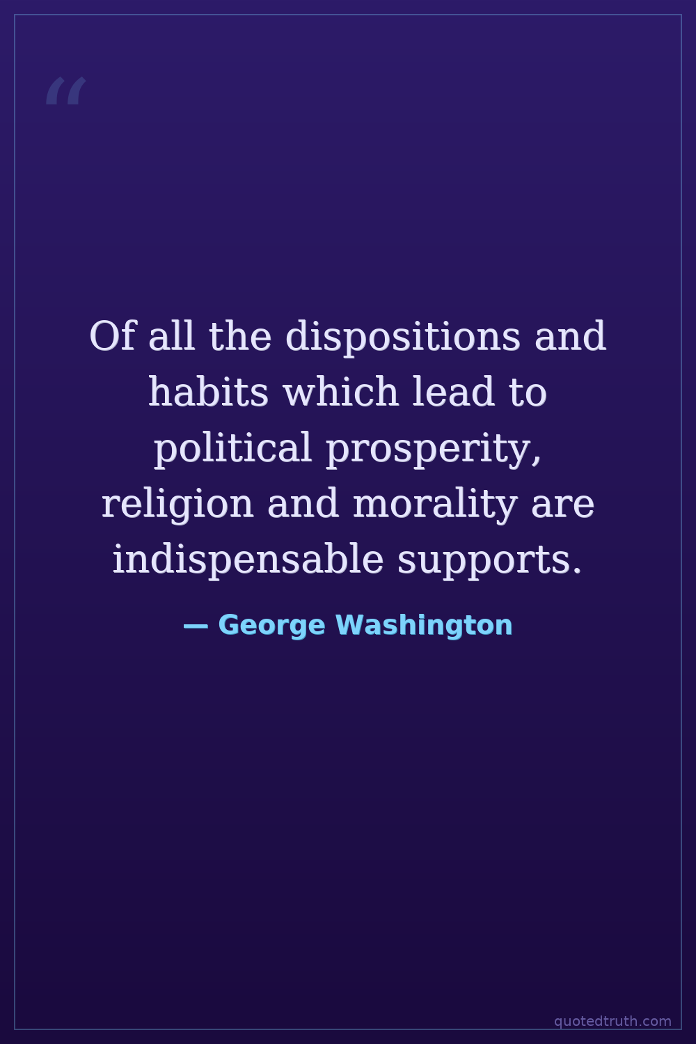 Of all the dispositions and habits which lead to political prosperity, religion and morality are indispensable supports.