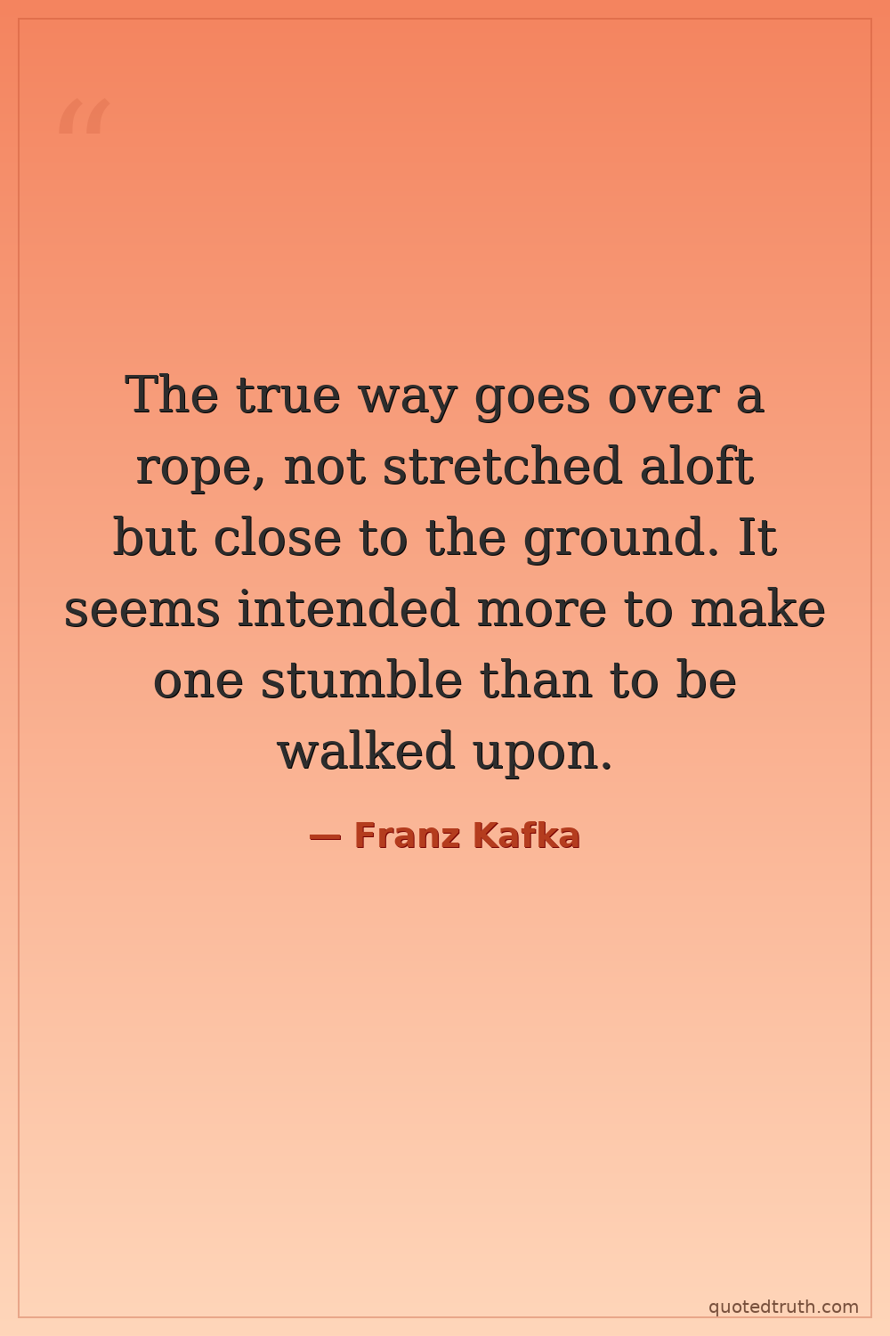 The true way goes over a rope, not stretched aloft but close to the ground. It seems intended more to make one stumble than to be walked upon.