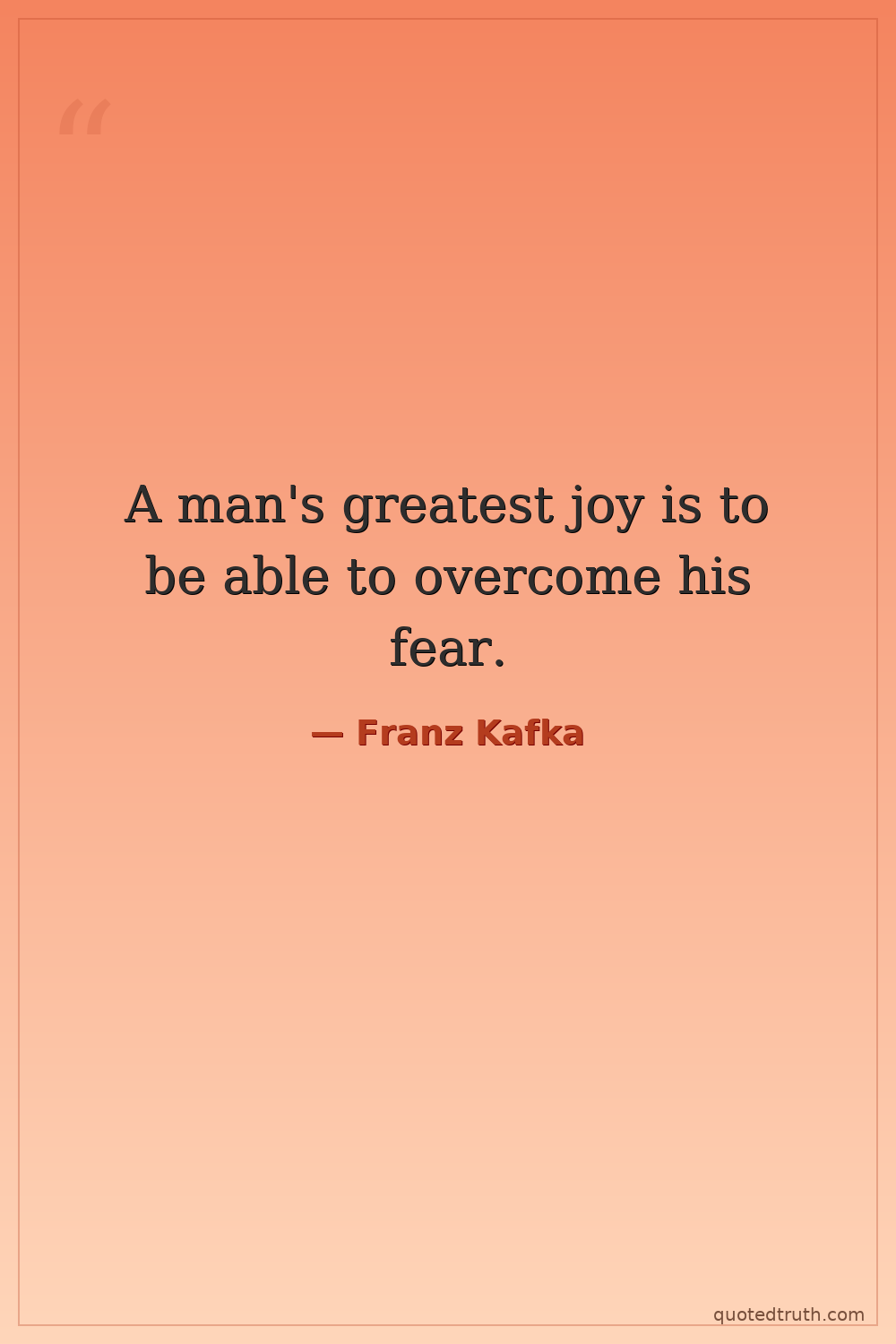 A man's greatest joy is to be able to overcome his fear.