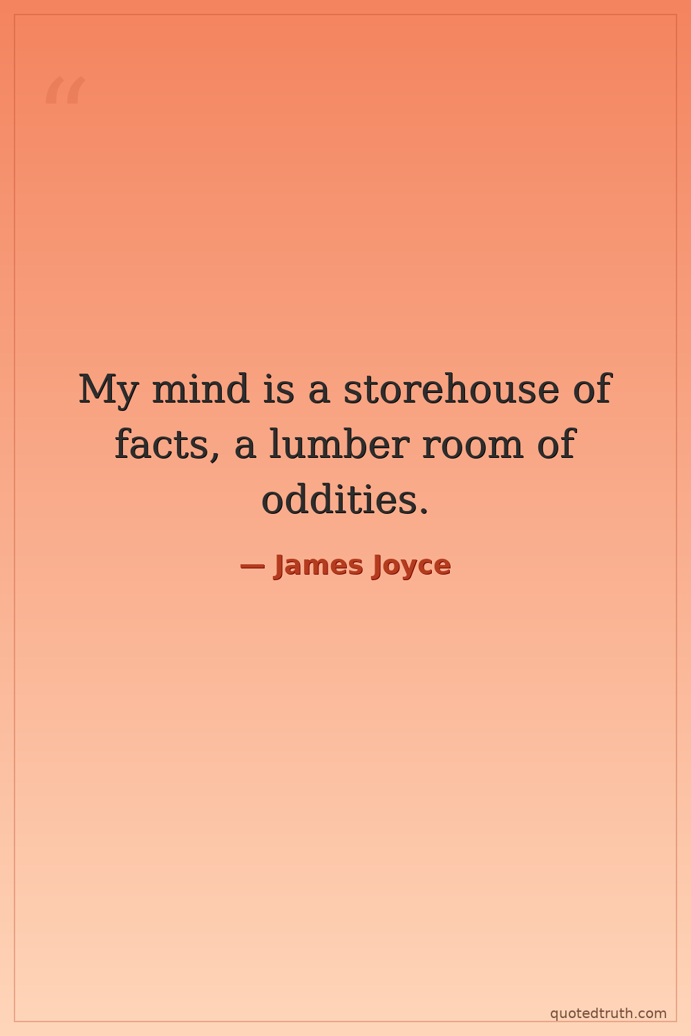 My mind is a storehouse of facts, a lumber room of oddities.