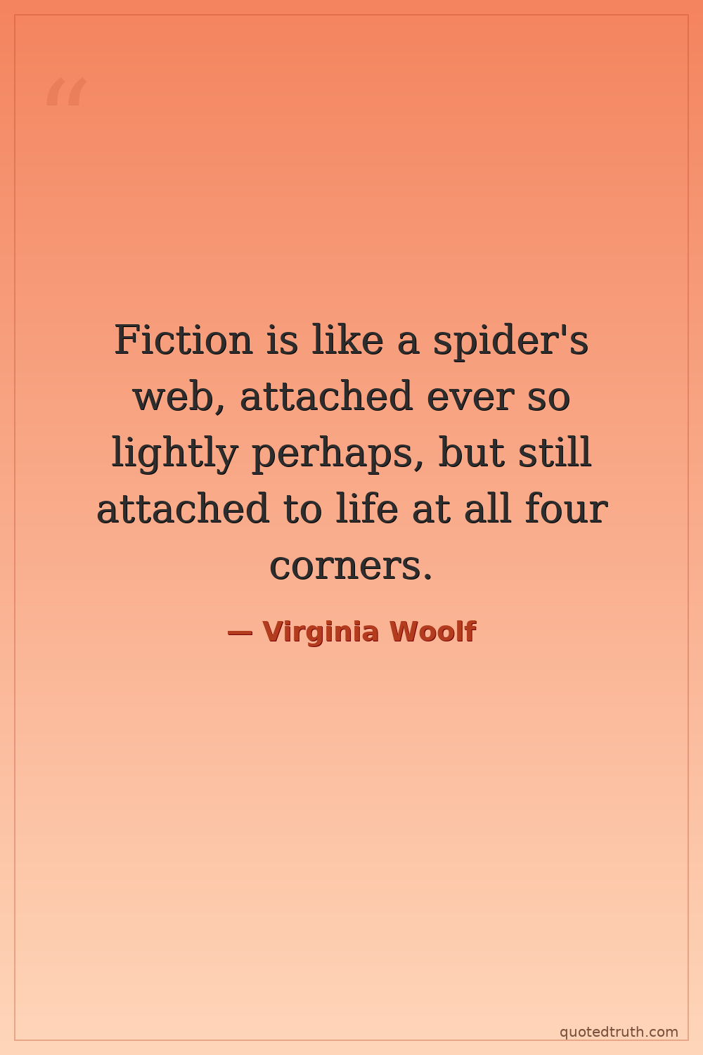 Fiction is like a spider's web, attached ever so lightly perhaps, but still attached to life at all four corners.