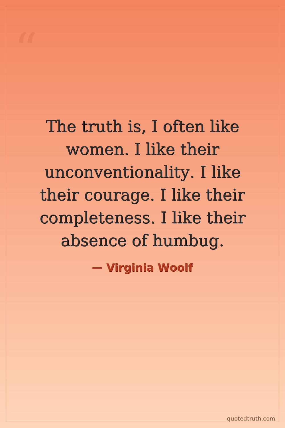 The truth is, I often like women. I like their unconventionality. I like their courage. I like their completeness. I like their absence of humbug.