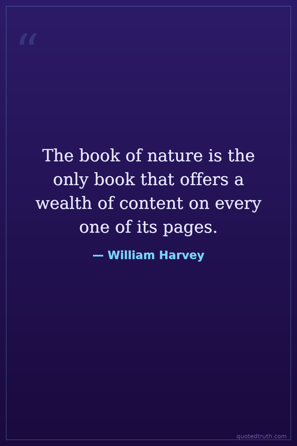 The book of nature is the only book that offers a wealth of content on every one of its pages.
