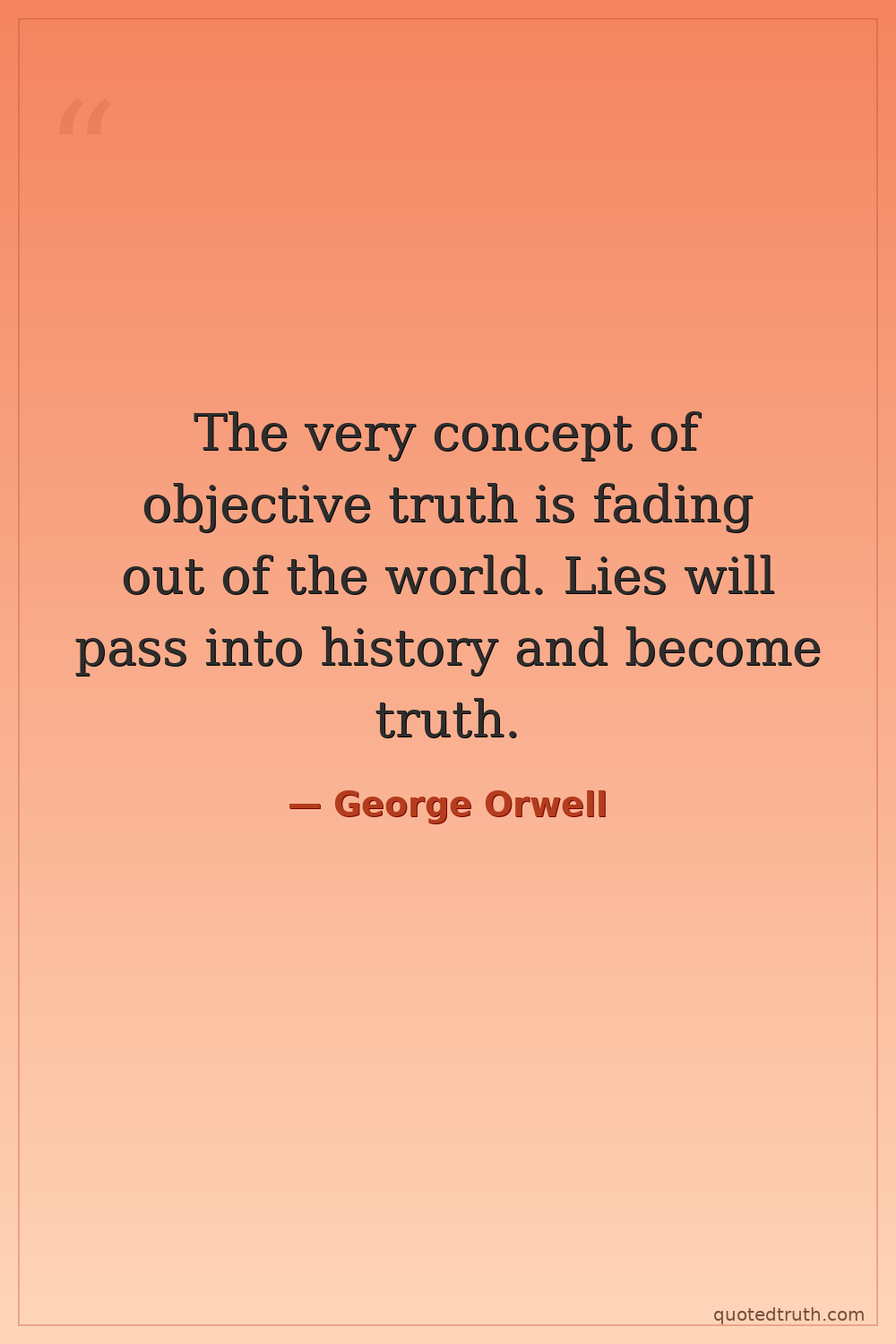 The very concept of objective truth is fading out of the world. Lies will pass into history and become truth.
