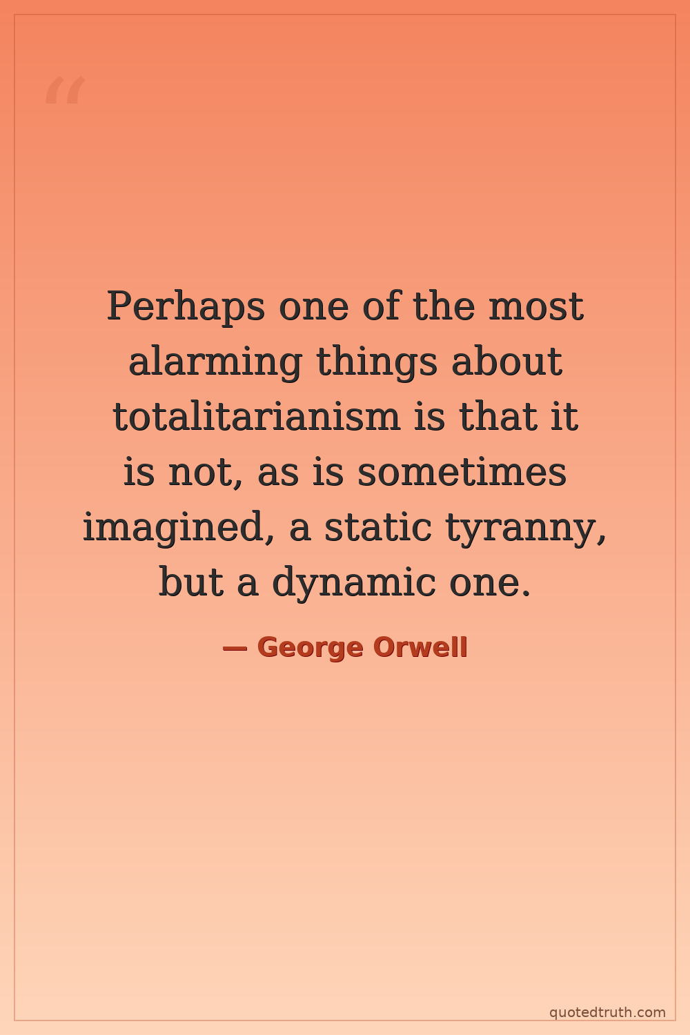 Perhaps one of the most alarming things about totalitarianism is that it is not, as is sometimes imagined, a static tyranny, but a dynamic one.