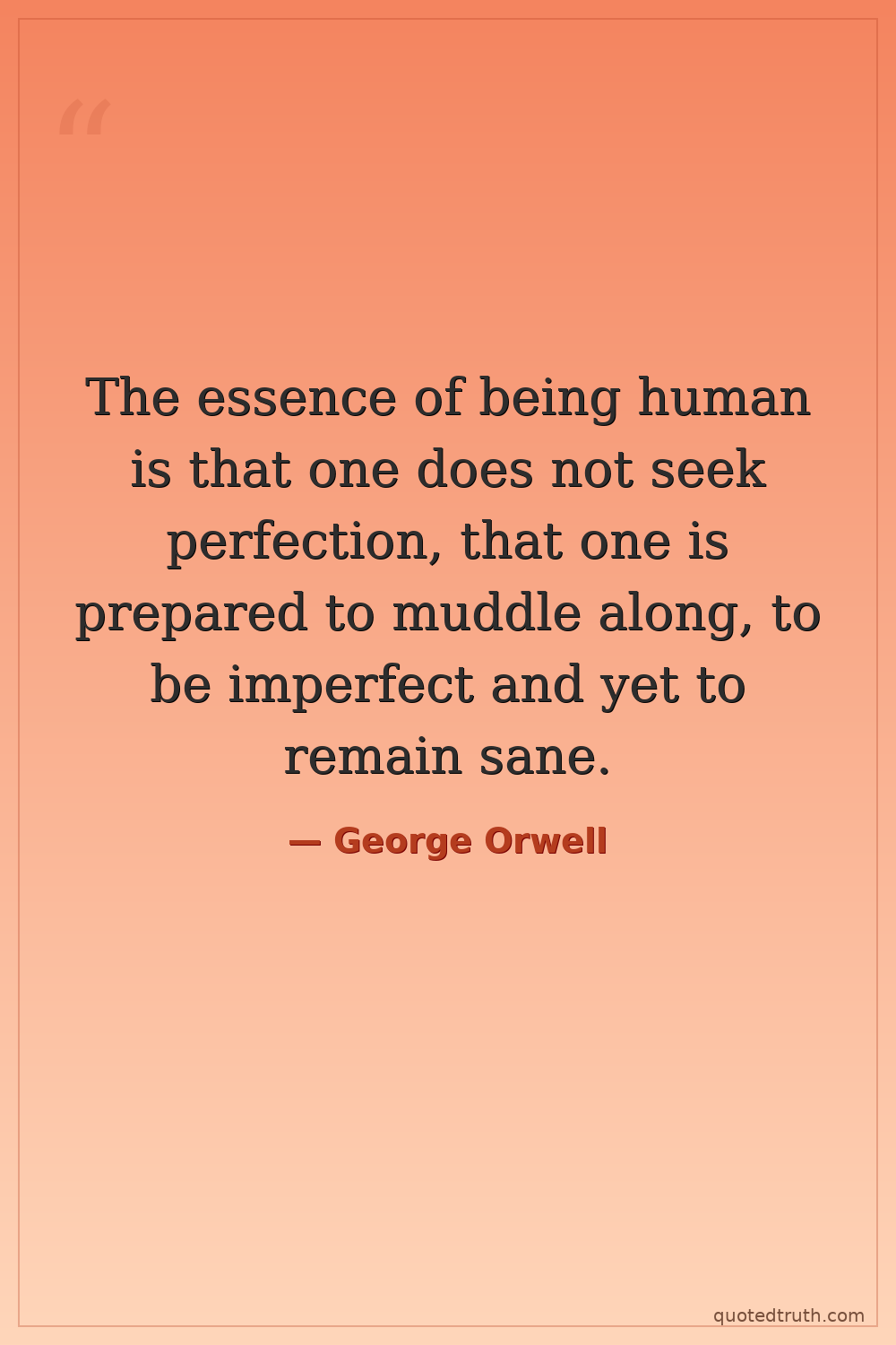 The essence of being human is that one does not seek perfection, that one is prepared to muddle along, to be imperfect and yet to remain sane.