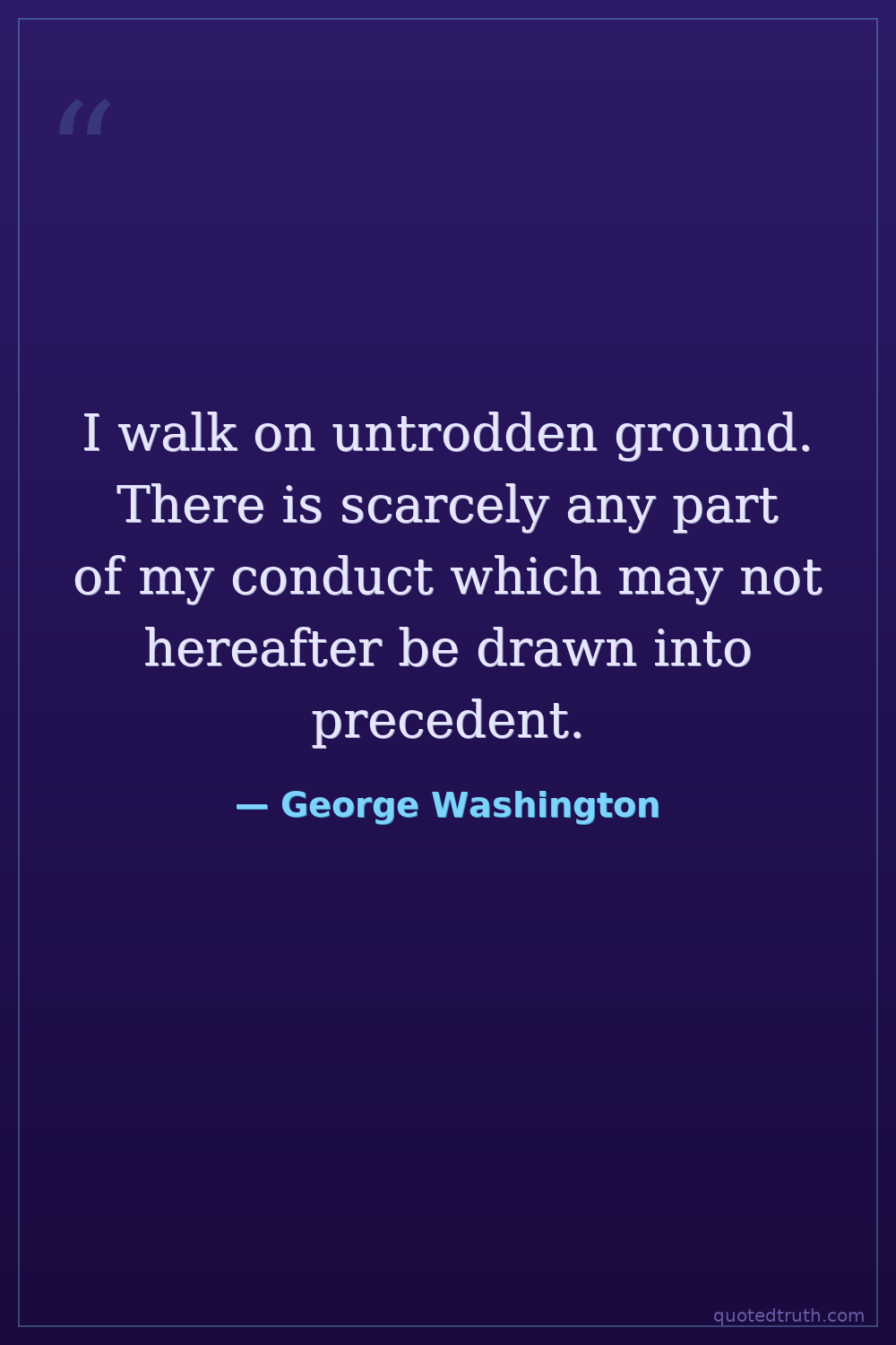 I walk on untrodden ground. There is scarcely any part of my conduct which may not hereafter be drawn into precedent.