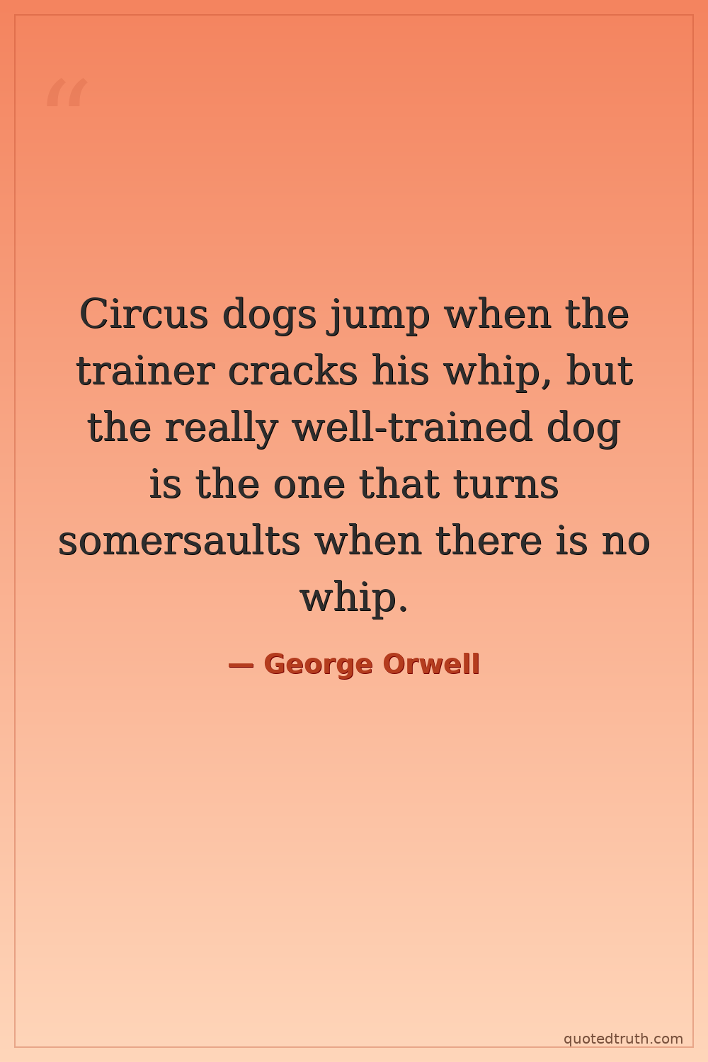 Circus dogs jump when the trainer cracks his whip, but the really well-trained dog is the one that turns somersaults when there is no whip.