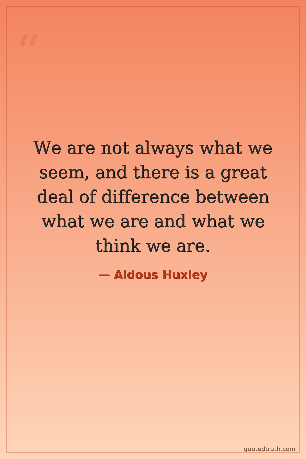 We are not always what we seem, and there is a great deal of difference between what we are and what we think we are.