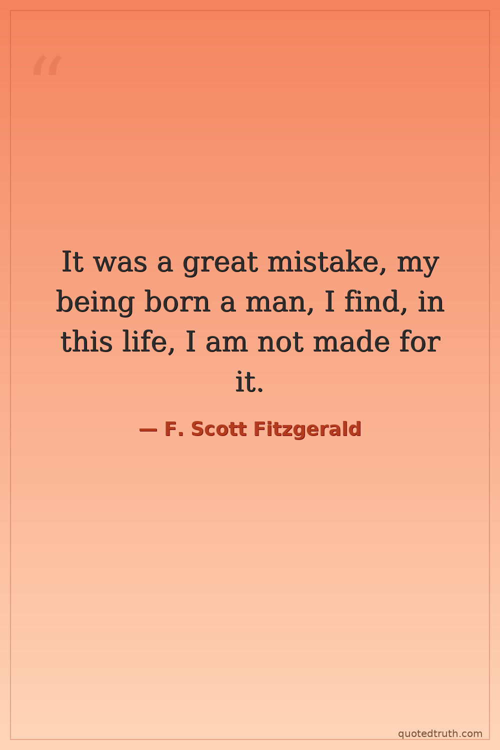 It was a great mistake, my being born a man, I find, in this life, I am not made for it.