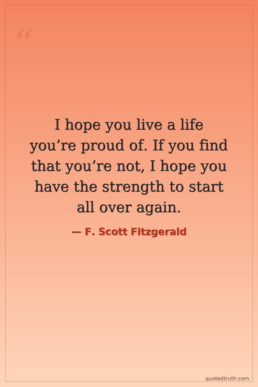 I hope you live a life you’re proud of. If you find that you’re not, I hope you have the strength to start all over again.