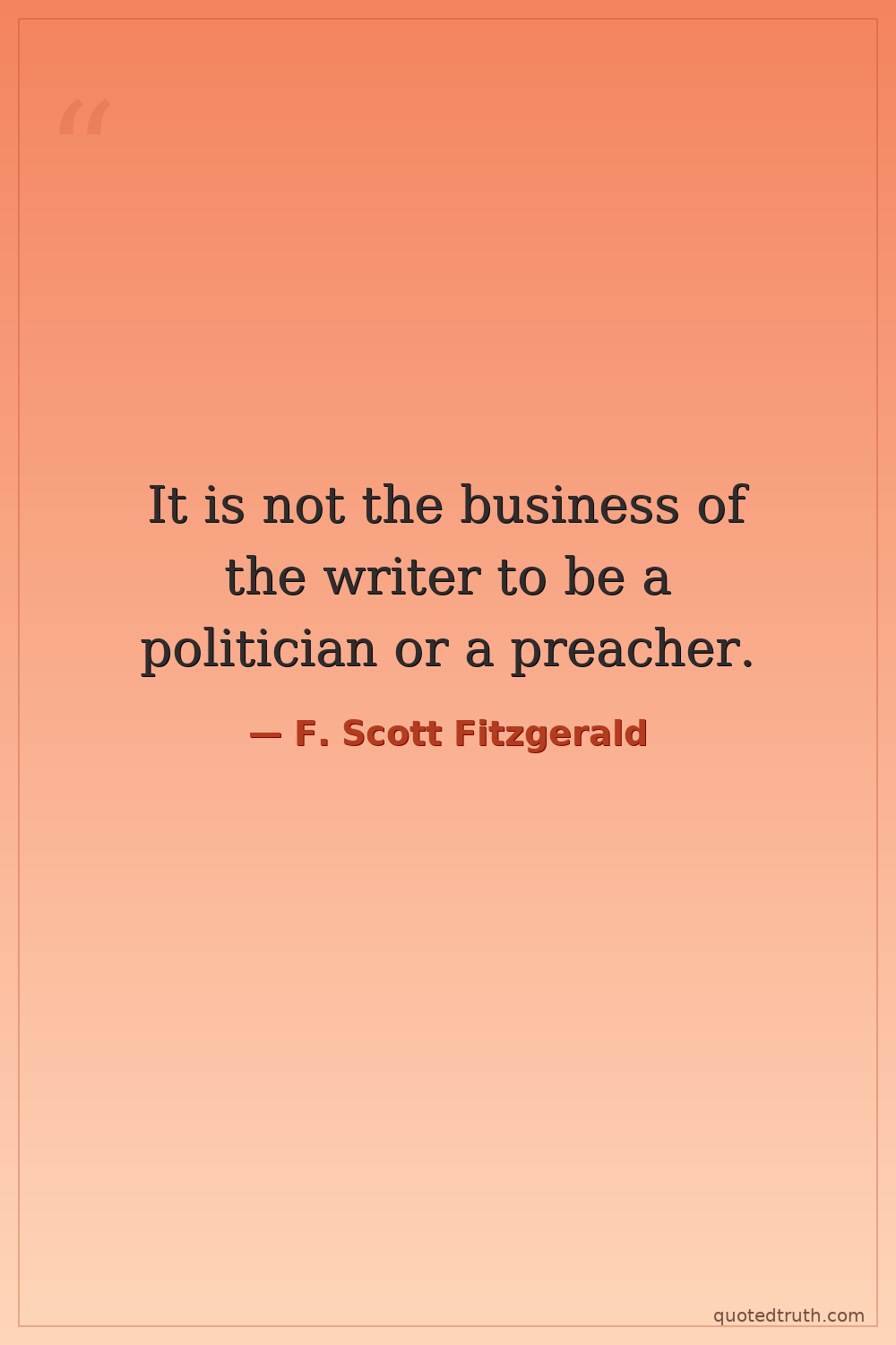 It is not the business of the writer to be a politician or a preacher.