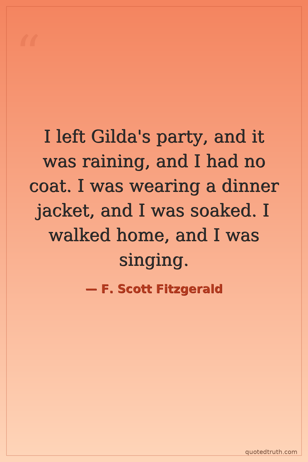 I left Gilda's party, and it was raining, and I had no coat. I was wearing a dinner jacket, and I was soaked. I walked home, and I was singing.