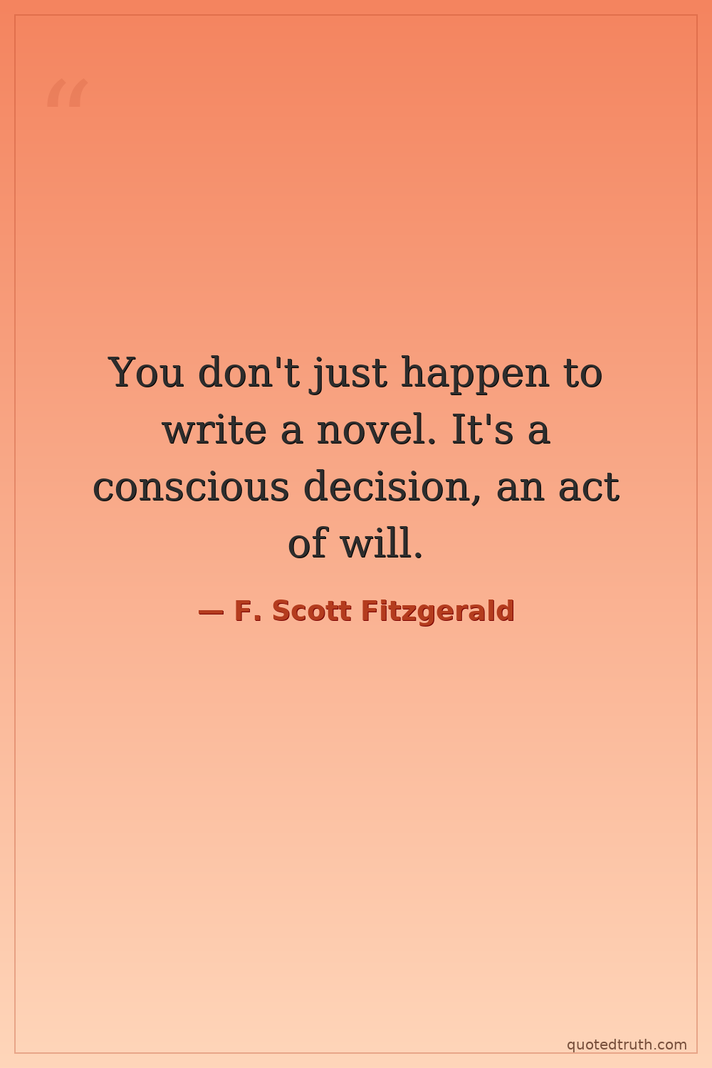 You don't just happen to write a novel. It's a conscious decision, an act of will.