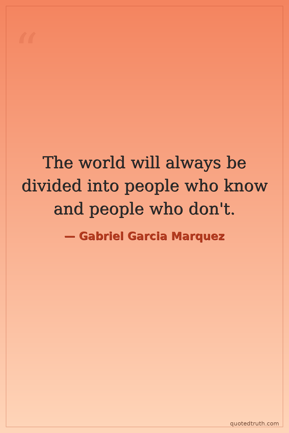 The world will always be divided into people who know and people who don't.