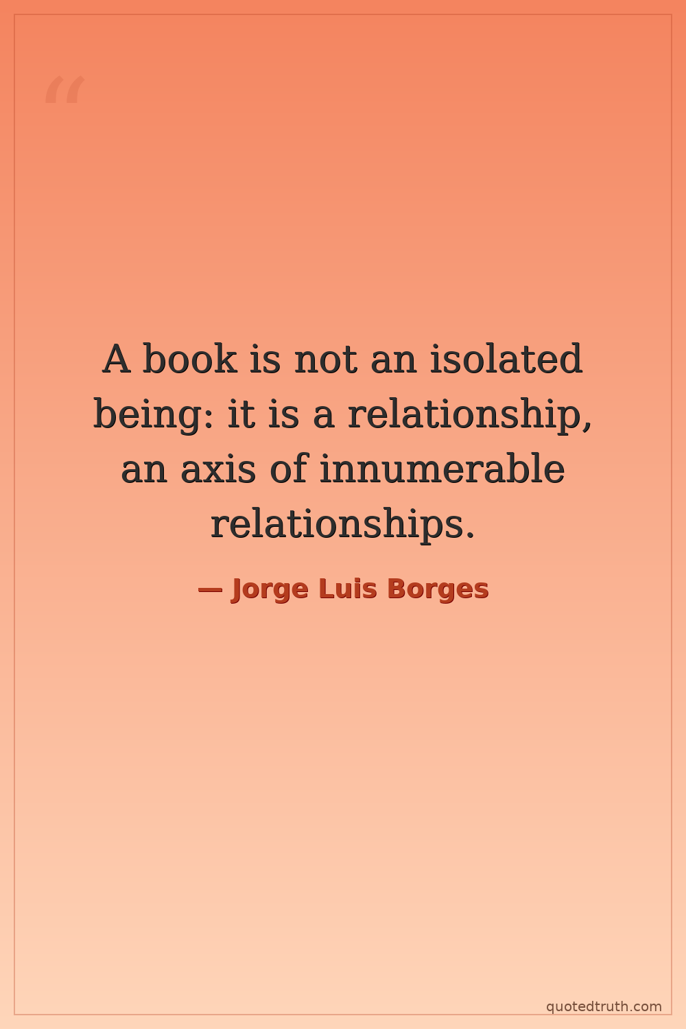A book is not an isolated being: it is a relationship, an axis of innumerable relationships.