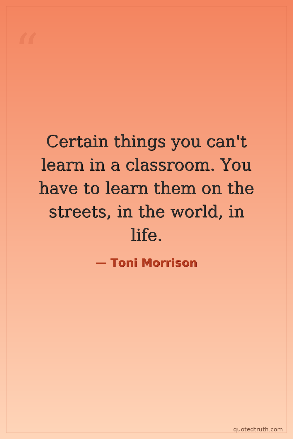 Certain things you can't learn in a classroom. You have to learn them on the streets, in the world, in life.