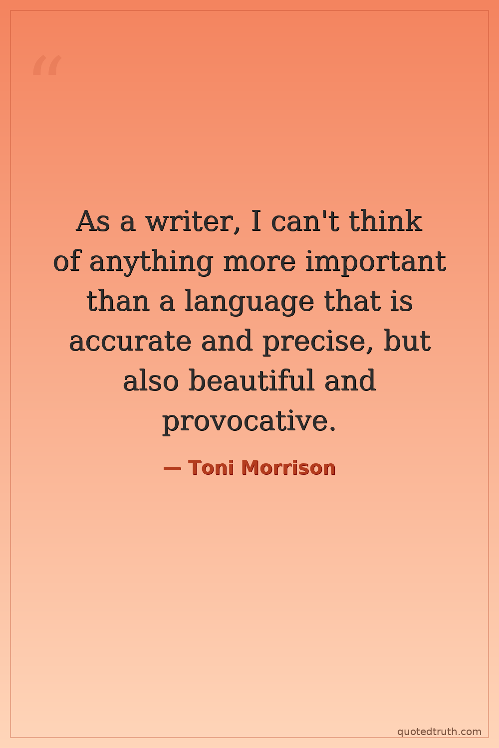 As a writer, I can't think of anything more important than a language that is accurate and precise, but also beautiful and provocative.