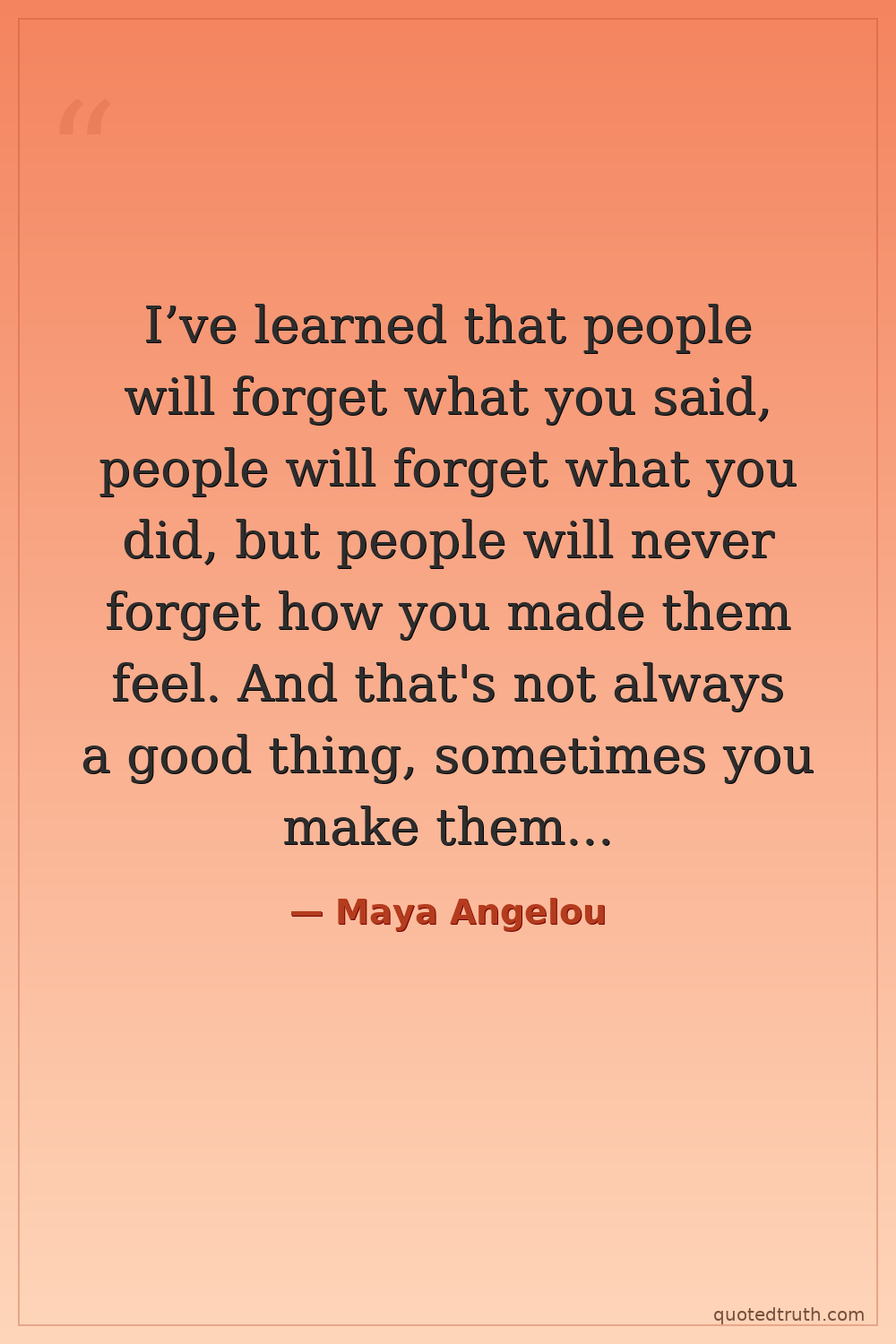 I’ve learned that people will forget what you said, people will forget what you did, but people will never forget how you made them feel. And that's not always a good thing, sometimes you make them feel really bad.