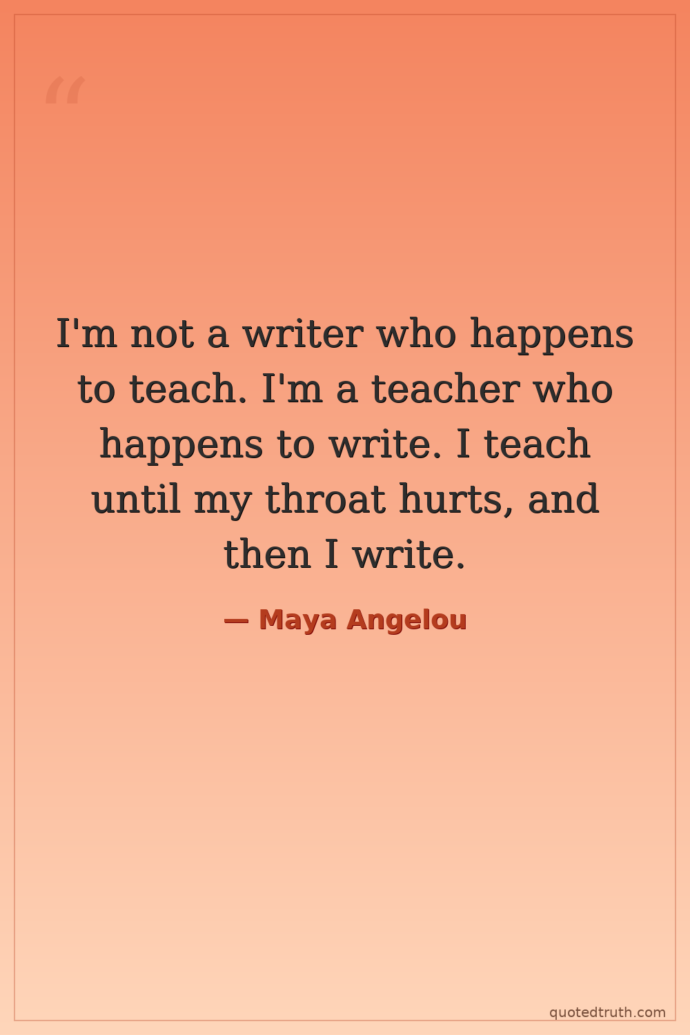 I'm not a writer who happens to teach. I'm a teacher who happens to write. I teach until my throat hurts, and then I write.