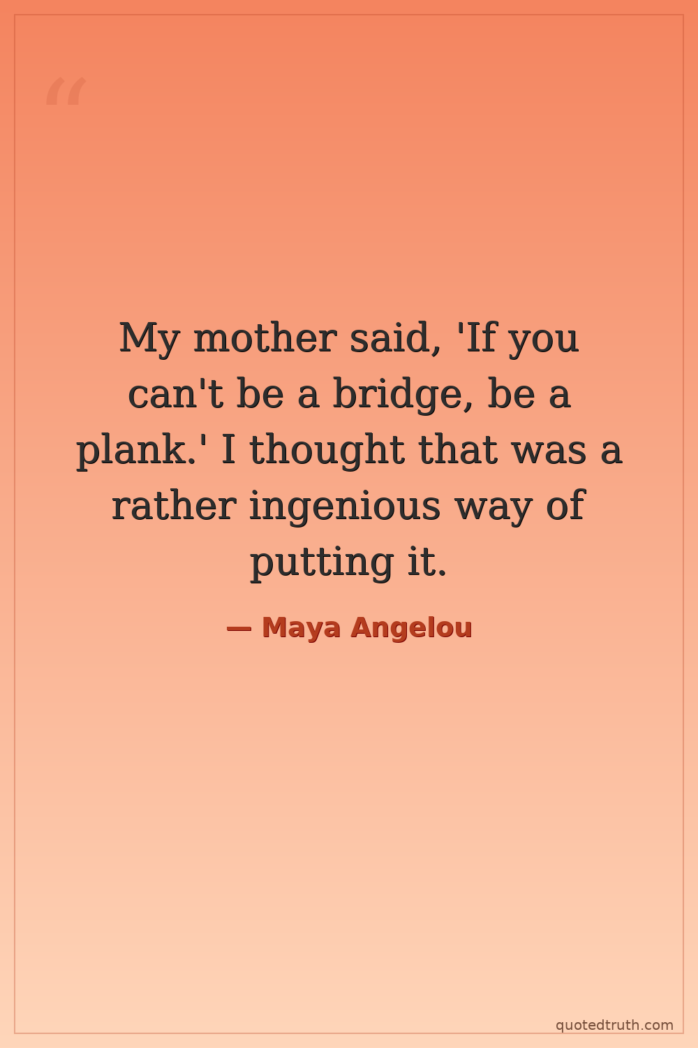 My mother said, 'If you can't be a bridge, be a plank.' I thought that was a rather ingenious way of putting it.
